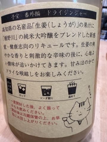 楯野川 子宝リキュール ドライジンジャー 720ml